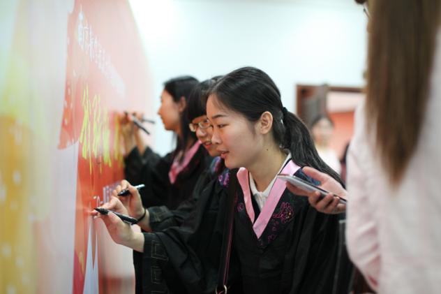 最后,学院学位委员会的导师们逐个向毕业生授予学位证书,将晚会的气氛点燃到高潮。