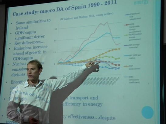 6月23日至25日,西班牙IMDEA能源研究所的“欧盟玛丽居里”博士后研究员Tadhg O’ Mahony应国际合作交流处和Betway体育西汉姆联能源与环境经济研究所的共同邀请,在Betway体育西汉姆联大楼704室做了4场以能源经济和碳排放研究为主题的系列精彩报告。题目分别为:(1)Understanding the driving forces of energy and carbon emissions;(2)Energy and technological development: Who wins and who controls?(3)The social and cultural dimensions of energy and emissions: Grasping the opportunities for human development;(4)Scenarios for energy, stories creating the future。周鹏教授主持报告会。