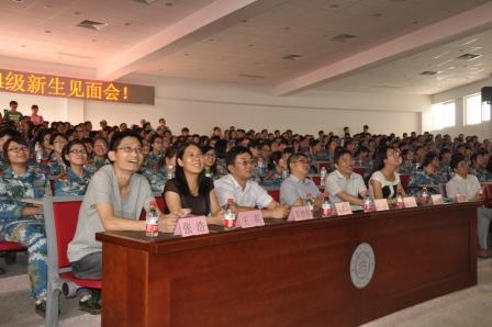 9月5日下午,我院在将军路校区召开了2014级师生见面会,院长周德群、党委书记李遥、副院长张卓、副院长王英、党委副书记许静,各系专业教师代表,全体辅导员,2014级班级学导,以及全体2014级本科生研究生同学参加了见面会。