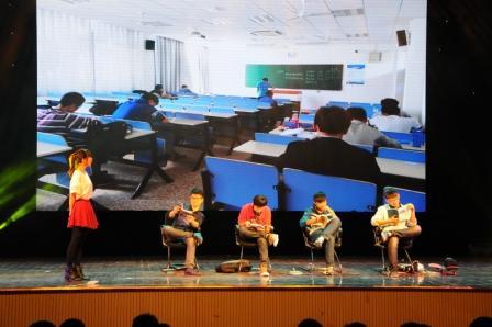 第二篇章砥砺传承,以“传承”为主线,讲述了学院专业、学术、科研发展过程中的大事,这一篇章通过舞台剧、快板、歌舞以及毕业院友的视频感言和祝福,体现学院学科发展的传承与经管人敢为人先的创新。