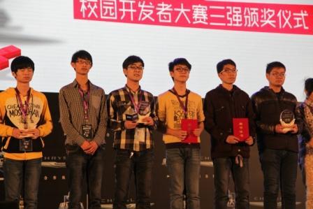 12月22日,由联想集团主办、联想idea精英汇全程承办的“ 2014联想茄子快传校园开发者大赛”全国总决赛在北京国家会议中心举行。联想茄子快传创始人陈少为、联想乐基金董事总经理宋春雨、联想游戏创始人陈学桂、黑马基金投资人韦龑等7位企业高管亲自担任评委。最终由我院2012级信息管理与信息系统专业童杜栩同学担任队长的五道口风云团队凭借着精良的游戏设计、完美的视觉感受和精彩的现场解说获得“联想”公司6万元的创新一举夺得此次总决赛的冠军,并获得6万元巨额奖金、3万元种子基金和联想实习机会。