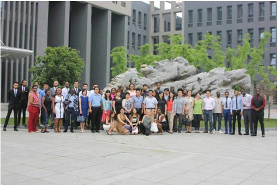 2015年6月8日上午,国际商务专业本科留学生毕业论文答辩工作在江宁校区东区D3教学楼顺利举行。来自印度尼西亚、布隆迪、巴基斯坦、埃塞俄比亚、津巴布韦、也门、德国、俄罗斯等18个国家的42名本科生参加了论文答辩。 答辩间隙,参加答辩的留学生们到经管学院大楼前与经管学院领导和教师们合影留念,感谢经济管理学院的老师们四年来辛勤的教学工作。经管学院周德群院长和学院党委书记焦宏图与留学生们亲切合影,并预祝答辩工作顺利进行。