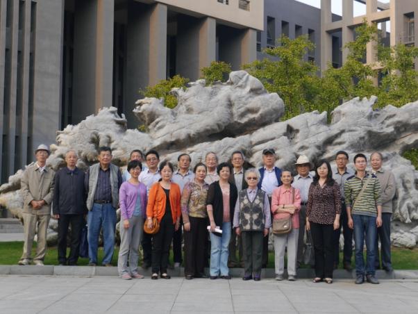 踏秋活动结束后,学院组织老同志参观了学院文化建设,并在“奋进石”前合影留念。