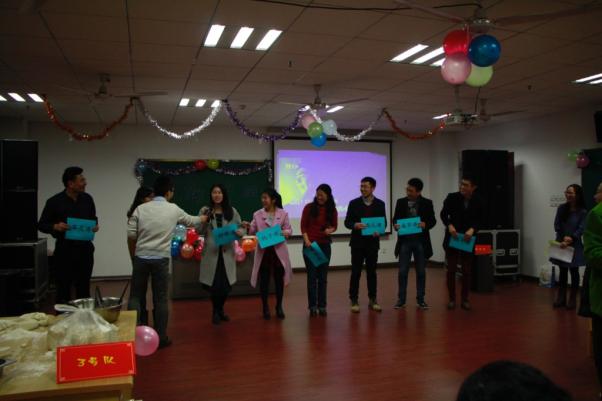 这次聚会以“包饺子”比赛为主题,其间穿插各种节目表演,场地里人头攒动,欢声笑语,热闹非凡。学院三个系和行政服务中心组成四个代表队,每队5人,参加了包饺子比赛。参赛选手在裁判员的一声令下,你追我赶,不甘示弱,大显身手。五名“吃货”评委在规定的时间以“速度快、形状美、味道佳”为标准,评选出了一、二等奖。新进教工自编歌词,倾情演绎的《经管欢迎你》拉开了演出的序幕,MBA中心选送的《惊鸿舞》、行政服务中心的舞蹈《卓玛》、二胡表演、学生赞助的《新疆舞》、退休老师的京剧保留曲目等,将现场的气氛一次又一次推向高潮。最后,老师们齐上阵,一起动手包饺子、煮饺子,当一盆盆热腾腾的饺子端上桌时,大家围着饺子,争先恐后地抢着,吃着,脸上洋溢着幸福的微笑。