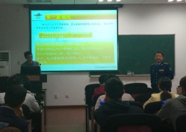 2016年4月26日下午两点,空军驻中航工业洪都航空工业集团军事代表室高级会计师雷定权大校受我院灰色系统研究所邀请,在Betway体育西汉姆联704室,做了题为“某型军用飞机购置目标价格论证、控制及审核全过程分析”的报告。