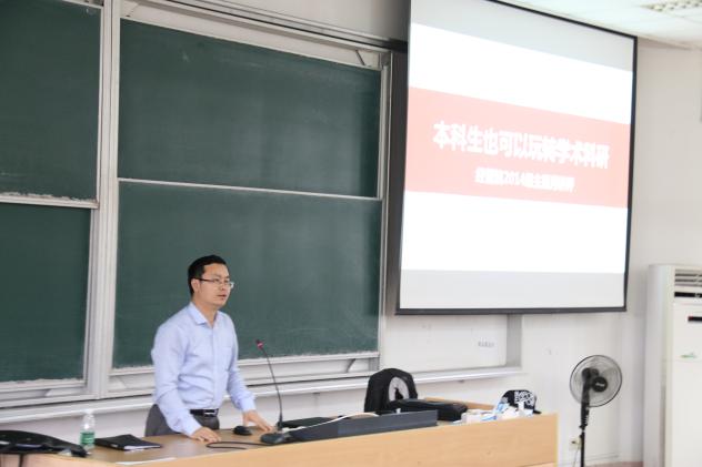 为激发学院本科生参与学术科研的热情,提升求实精神、创新能力等素质能力,5月27日,我院14级邀请教务处副处长朱建军、教务处实践培养科科长袁磊开展了“本科生也可以玩转学术科研”的主题宣讲会。
