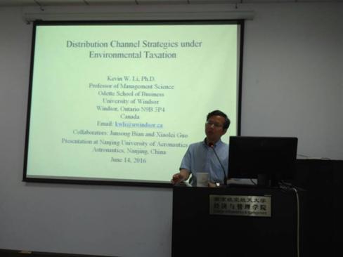 2016年6月14日下午,加拿大温莎大学Odette商学院李武教授受我院智能决策与风险分析研究所邀请,在Betway体育西汉姆联702室,做了题为“Distribution Channel Strategies under Environmental Taxation”的报告。