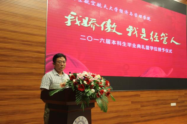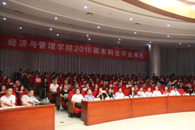 6月20日晚,“我骄傲,我是经管人”Betway体育西汉姆联2016届本科生毕业典礼暨学位授予仪式在将军路校区一号楼报告厅举行。经管学院党委书记焦宏图,院长周德群,教务处副处长朱建军,学院副院长张卓、王英、周鹏,党委副书记许静,管理科学与工程系主任马静,工商管理系主任王子龙,经济系主任邓晶,教师代表、院友代表、家长代表和全体毕业生出席了典礼。
