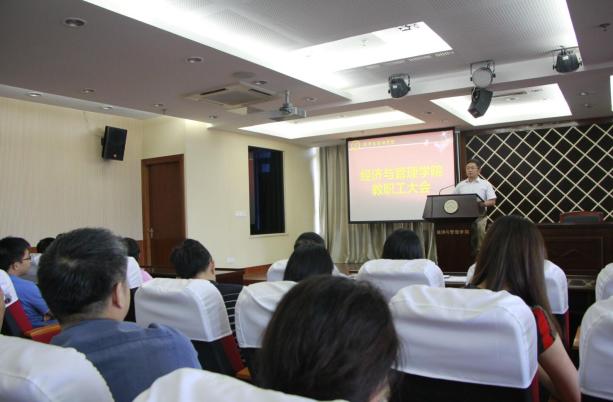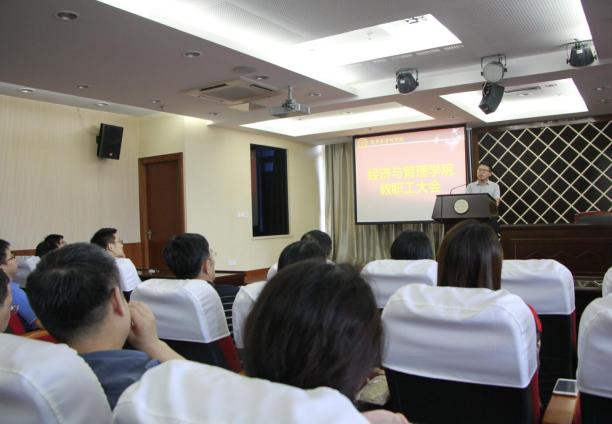 会上,院长周德群首先回顾了过去一学期的工作。他指出,上半年是学院各项事业发展重要的阶段,全体教职工紧紧围绕学校“十三五”发展规划和学院改革目标,较好的完成了各项目标任务。教学工作全面加强,引进3名青年教师,促进了教学和师资队伍的建设。人才培养又出新亮点,青年教师周鹏入选2016国家杰青年已经公示。科研工作取得重大突破,获得国家自然科学基金6项、国家社科基金5项。我院自2015年来实行教师聘任双轨制,此次国家自科青年基金我院高中3项,体制改革对青年教师起到的培养和激励的成效已初步显现。高端培训国际化初显端倪,学院与法国、西班牙等国家签订协议,联合办学,培养高端人才。在深刻分析了学校相关政策和我院发展所面临的形势后,周德群对新学期的工作进行了部署,强调要坚持学院改革发展目标不动摇,全面加强学院文化建设,以提高人才培养质量为核心,积极探索和创新教师培养模式。以满足人才需求、社会需求、教育需求为目标,进一步调整优化专业结构,提高教师总体水平。
