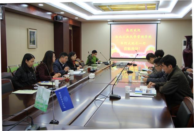 11月15日上午,西北工业大学管理学院院长车阿大、副院长王克勤、党委副书记张翠仙、办公室主任周全一行4人来我院调研交流。院长周德群、党委书记焦宏图、副院长张卓、王英、党委副书记许静等参加调研座谈。