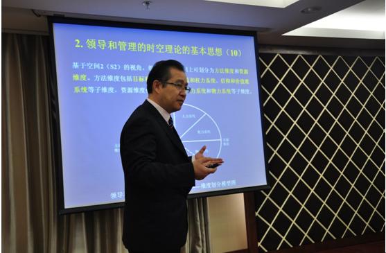 接下来,论坛进入主题报告阶段。上半场的学术报告由Betway体育西汉姆联胡恩华教授主持。首先是来自清华大学经济管理学院陈国权教授带来了一场题为“领导和管理的时空理论”的学术报告。陈教授为了引入时空观念,将组织比喻成为一个时空系统,即任何组织都是一个时空的体系,包含时间和空间的因素。基于这个比喻,陈教授提出,领导者和管理者要从时空的视角来分析一个组织,要从“time”和“space”两个维度来同时分析和设计组织,领导者和管理者只有具有时空的思维,同时从动态和系统的角度来开展工作,才能够成功地领导和管理一个组织。在演讲的过程中,陈教授给出了几张象形文字图片,从时间和空间维度上来解析领导和管理的时空理论,并自己绘制的一幅画展示了他的领导和管理的时空理论,可谓是别出心裁,让人耳目一新。