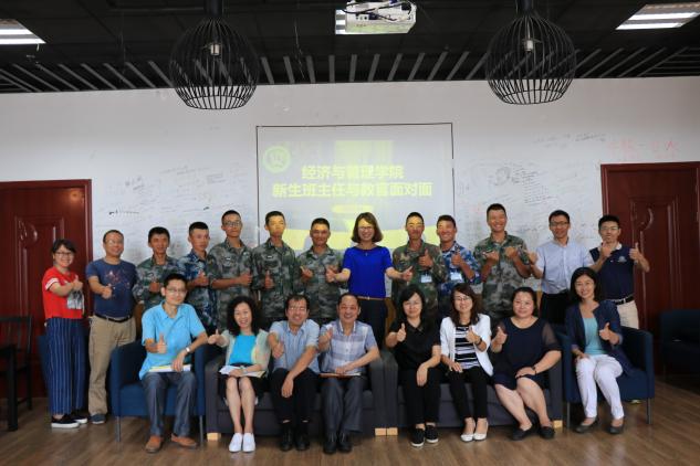 9月21 日,Betway体育西汉姆联在经管咖啡馆召开2017级新生班主任和教官面对面座谈会。院党委书记焦宏图、副院长邓晶、党委副书记许静、2017级新生班主任、辅导员以及我院新生带训教官参加了此次座谈。