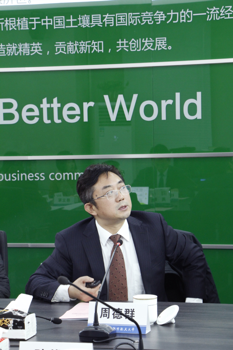 首先,周德群院长代表学院致辞,对来访专家表示诚挚的欢迎和感谢。随后,周德群院长就学院沿革、系所简介、学科建设、师资对我、人才培养、科学研究、社会服务、国际合作和校友工作这九个方面做了详细介绍。