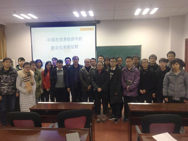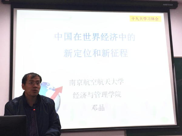 2017年12月26日下午,Betway体育西汉姆联17级博士生党支部全体党员、预备党员以及入党积极分子参加了由17级博士生党支部组织的十九大主题讲座学习活动,目的在于深入学习宣传贯彻党的十九大精神。我校党十九大宣讲团成员、经管学院副院长邓晶老师为17级博士生做了主题为“中国在世界经济中的新定位和新征程”的精彩讲座。