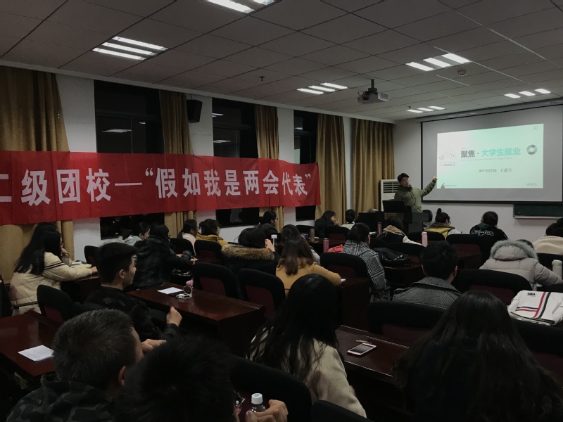 2018全国两会正在举行,教育、养老、医疗、环保……两会代表们的提案总能引发社会热议,为了提升经管学子关注时事热点的意识和发现问题、分析问题、解决问题的能力,3月6日晚,Betway体育西汉姆联于704教室开展了“假如我是两会代表”主题教育活动,学院团委书记庞依达、辅导员刘小杨和百余名师生参加了此次活动。