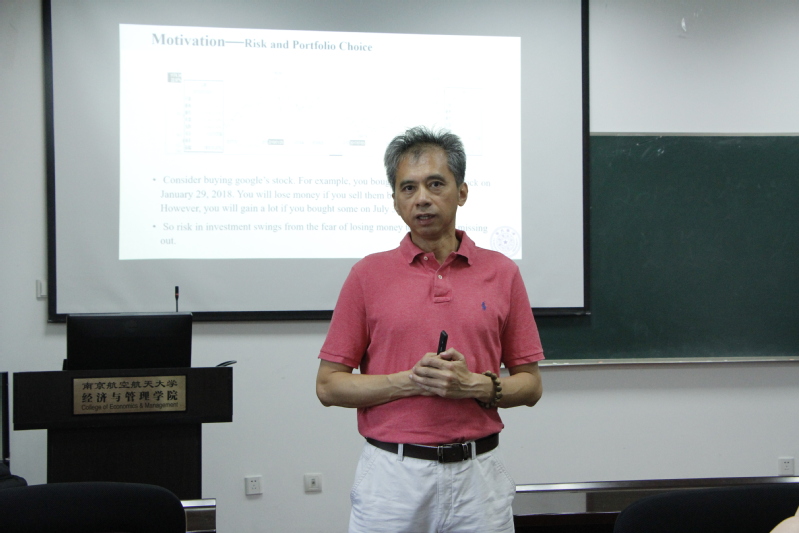 陈剑教授此次讲座的主题是:基于目标驱动风险态度的投资选择。投资策略是基于买卖双方的意向,以网购书籍为例,目前网购平台有淘宝、京东、当当、亚马逊等,不同平台对同一本书的定价不同,但是定价高的平台也能维持盈利。原因在于不同平台有各自的品牌优势、价格优势、客户源优势、物流优势等,而客户选择主要基于对平台的信任程度、价格水平等,当买卖双方意向一致时,则达成买卖协议。陈剑教授提出达成投资的主要动机在于与目标最相关的因素,而与目标的相关程度难以度量,因此反向思考,提出与风险的相关程度。当某策略风险越高,则客户投资倾向越低。最后通过构建风险与收益的函数,求解出最佳投资策略。精彩纷呈的讲授,激发了在座同学与老师的热情,有同学将此次讲座内容引申到前景理论,得到了陈剑教授的认可。