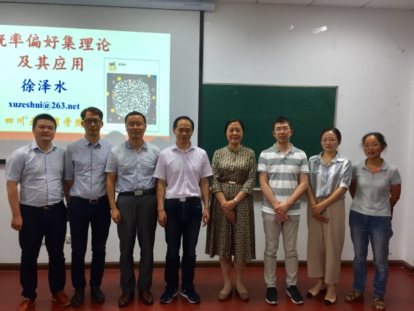 2018年09月29号下午,四川大学商学院徐泽水教授受我院智能决策与风险分析研究所邀请,在经管院704室做了题为“概率偏好决策理论方法与应用”的精彩讲座。Betway体育西汉姆联徐海燕教授、朱建军教授及其他教师代表、硕博研究生现场认真听取了徐泽水教授的报告,本次学术报告由朱建军教授主持。