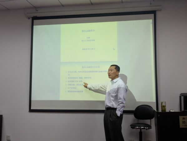 孙教授对“量化金融交易”进行了一次全景式报告。量化金融交易出现的较晚,在20世纪八、九十年代的时候才开始出现,而在进入到21世纪以后,得益于计算机技术的发展,量化金融交易迅速发展起来。在实务中,从事量化金融交易人员的专业背景也由过去主要的财经类转向囊括数学、计算机等多学科领域。孙教授自身在2000年从芝加哥大学博士毕业之后,数学专业的他恰逢华尔街开始招收数学专业的人士,自此便进入华尔街工作,并在工作中不断学习金融方面的专业知识。量化金融交易源于实践,目前已经形成了独立的学科,并正处于快速的发展中。在介绍完量化金融交易的发展历史后,孙教授简单介绍了量化金融这门学科所涉及的内容,主要包括衍生品交易、量化投资理论、商品期货、高频交易、资产证券化、模型检验和风险管理等。然后,孙教授重点介绍了期权期货定价,启发大家从风险对冲的角度去思考如何为期权定价,而不是传统上依靠概率期望的方式来计算定价。在对量化金融交易进行了总体性的介绍后,孙教授与学院师生进行了热烈的讨论,回答了师生的一些疑惑,并对量化金融交易的社会意义及未来的发展发表了自己的理解和看法。整场报告精彩纷呈,大家收获良多,报告最终在热烈的掌声中结束。