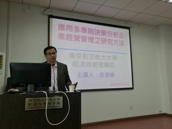 2018年11月5日上午,台中科技大学吴济辉博士在Betway体育西汉姆联大楼706室做了题为《应用多准则决策分析企业经营管理之研究方法》的学术报告。我院米传民、肖琳、李珊等管工系老师和学生积极地参加了此次报告。