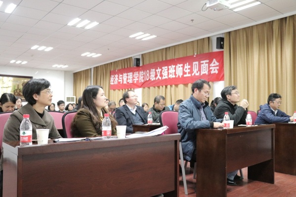 自2007年文强班成立以来,经管学院一直坚持为每一名文强学生配备一位学术导师,导师的选择采取填报志愿的方式,充分尊重了学生意愿,搭建了丰富的师生互动平台。此次教育思想大讨论18级文强班师生见面会聚焦人才培养,是学院坚持立德树人,突出人才培养核心地位的具体举措,学院还将师生座谈会以院长有约、名师有约等方式制度化、常态化的开展起来,积极听取多方意见,推动师生进行更加广泛和深入的交流。