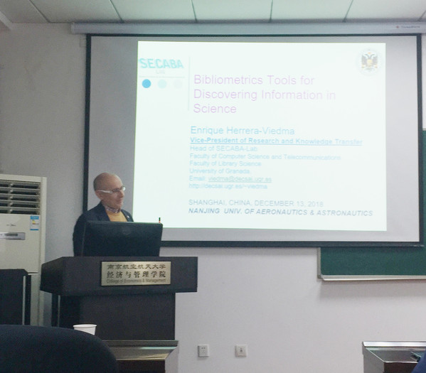 2018年11月13日上午,格拉纳达大学计算机科学和人工智能专业的教授Enrique Herrera-Viedma受我院智能决策与风险分析研究所邀请,经管学院做了题为Bibliometric Tools for Discovering Information in Science的讲座。经管学院朱建军教授、章玲教授、关叶青副教授、河沙玮讲师等老师以及部分硕博研究生参与了活动。