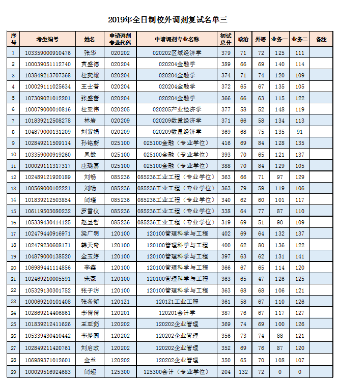 2019年全日制校外调剂复试名单三