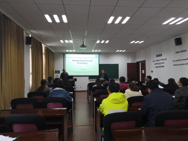 在此次学术交流活动中,耿涌教授首先介绍了其在循环经济方面的研究以及认识到的不足之处,并由此引出此次交流活动的主题——能值测度在循环经济中的应用分析。耿涌教授重点介绍了循环经济系统的分析、能值测度的概念和方法、能值测度过程中的关键问题以及世界范围内能值测度的案例四方面内容,并且提到了其研究的主要经历和方法。在此基础上,结合目前团队的研究进程与现场的师生毫无保留地分享了未来循环经济领域的热点问题。