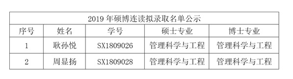 经过学院考核小组对申请学生的课程和科研能力考核,拟录取以下2位同学硕博连读,特此公示。