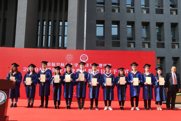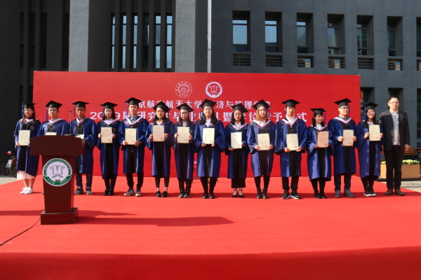 真挚感人的毕业典礼后,进行了庄严的学位授予仪式,学院学位委员会的导师们在权杖入场的欢呼声中走上舞台。首先,王英宣读了《关于颁发南航Betway体育西汉姆联2019届研究生毕业生毕业证书、学位证书的决定》,随后在学术权杖见证下,在全场老师、家长、同学的注视下,毕业生们骄傲地走过红地毯,从师长手中接过了学位证书,完成了人生中这一重要时刻,并留下一张张珍贵的合影。