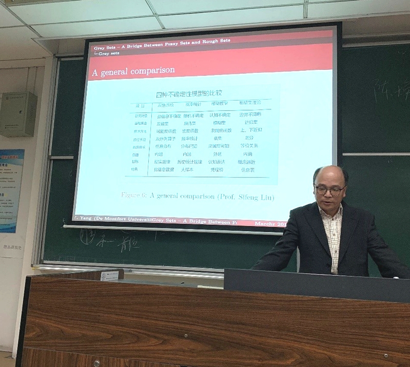 2019年3月18日晚上,英国得蒙福德(De Montfort)大学杨英杰教授受我院灰色系统研究所邀请,在将军路校区10302室作了题为“灰色模型和数据分析”的讲座。经管学院谢乃明教授、方志耕教授等教师及部分硕、博研究生现场聆听了杨英杰教授的报告,本次学术报告由谢乃明老师主持。