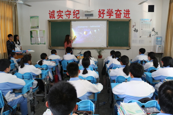 随后,涂志宏一行来到菱塘回族乡民族初中,学生代表、格桑花开支教团团长李姝萱围绕学校的“三航”特色为初二学生上了一堂题为“我们的目标是星辰大海”的科普课,向同学们介绍了“航空”与“航天”的区别与联系,领略了苍穹之上的广阔魅力,鼓励学生们建立远大理想抱负,认真学习科学知识,为国家科技事业的不断发展贡献自己的一份力量。