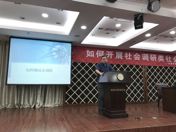 5月23日下午,Betway体育西汉姆联2019年暑期社会实践社会调研类专题培训,暨院青马工程第三次理论培训在经管楼A0305报告厅举行。本次活动邀请了我校人文与社会科学学院鲁兴虎老师,开展了“如何开展社会调研类社会实践”专题培训。学院团委书记庞依达、各年级辅导员和近两百余名社会实践项目负责人、院青马工程学员一同参加了此次培训会。
