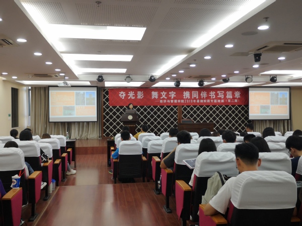 6月12号下午,"夺光影 舞文字 携同伴书写篇章"经管学院第二期暑期社会实践专题培训在经管楼A0305报告厅顺利举办。学院宣传员时云、2016级辅导员朱一豪、院新媒体中心邵丹惠分别就摄影摄像、团队运营和新闻撰写开展了专题培训,学院团委书记庞依达和近两百余名社会实践项目负责人参加此次培训。