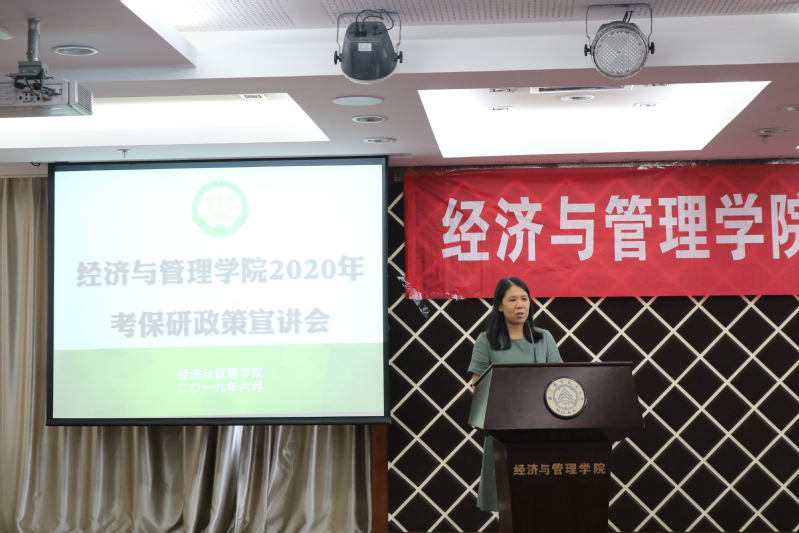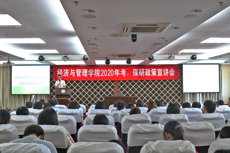 为了帮助2020届毕业生了解我院研究生招生政策,合理规划考研、保研,6月24日,Betway体育西汉姆联在A0305报告厅举行2020届考保研政策宣讲会。经管学院副院长王英、管工系系主任马静、工商系系主任谢嗣胜、经济系系主任袁潮清、各学科建设负责人、系所骨干教师、辅导员及百余名2016级学生参加了本次活动。