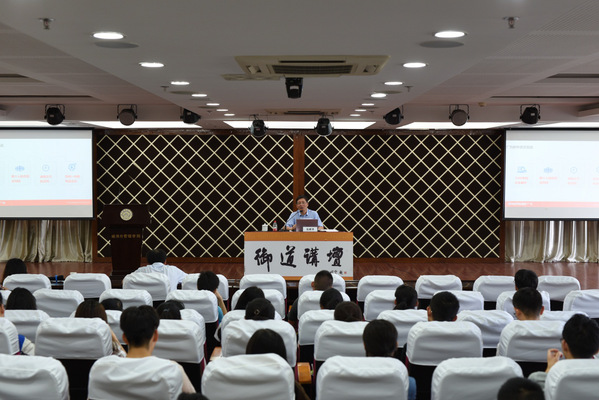 6月21日下午,第77期御道讲坛在Betway体育西汉姆联A0305报告厅举行。我校1985届校友、上海广为电器集团董事长范晔平先生应邀来校作主题为《中美贸易战中民营企业家的时代担当》的讲座,Betway体育西汉姆联党委副书记涂志宏、副院长邓晶等参加了本次讲坛。讲坛由涂志宏主持。