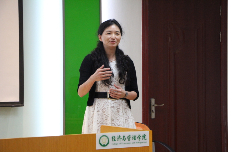 第二位报告人Rachel J. Huang,是台湾中央大学金融系教授,《Journal of Risk and Insurance》等期刊编委,研究成果发表在《Operations Research》,《 Management Science》, 《Journal of Economic Theory》,《Journal of Risk and Insurance》, 《Journal of Econometrics》, 《Journal of Banking and Finance》, 《Journal of Empirical Finance》等期刊上,Rachel J. Huang主要分享了Omega函数刻画的投资绩效指标体系及其在最优套期保值比率中的应用,该工作最近被《Journal of Banking & Finance》录用。