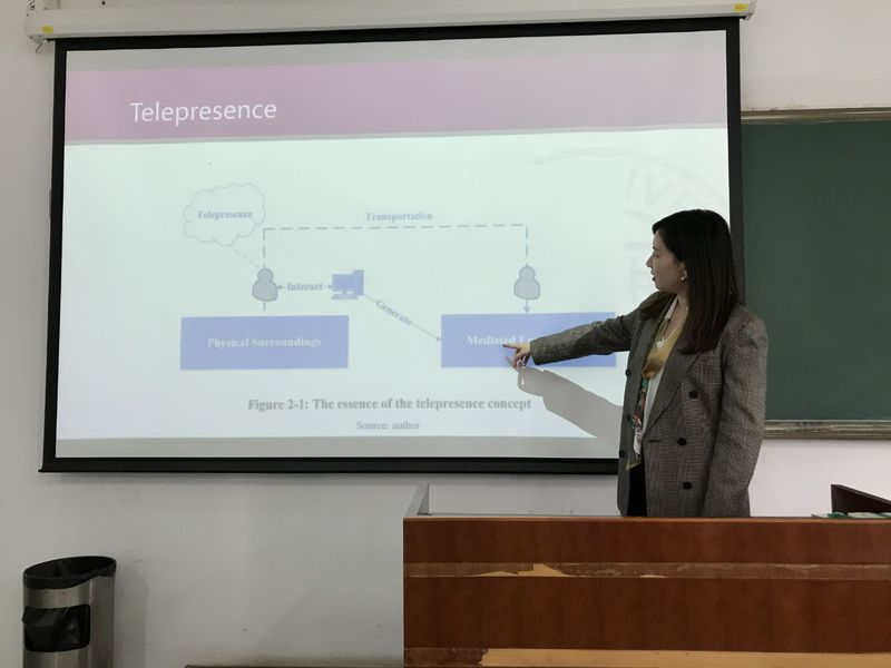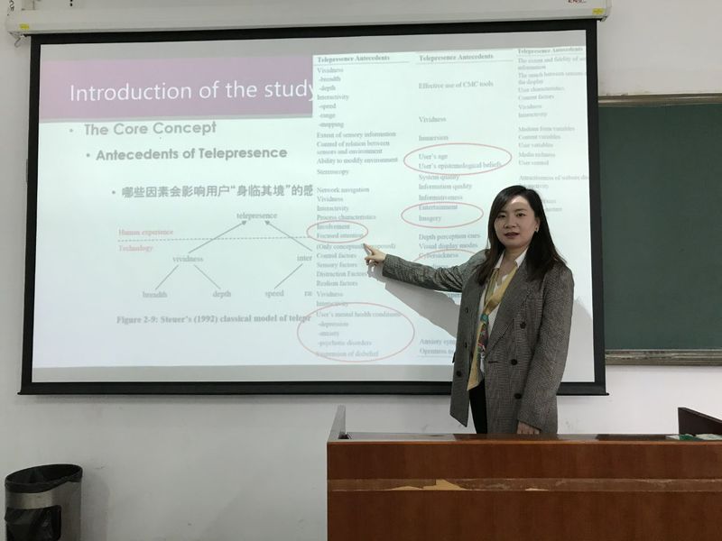 10月14日上午,南开大学商学院信息资源管理系讲师张丹老师应Betway体育西汉姆联信息管理与电子商务研究所邀请,在Betway体育西汉姆联704会议室作了题为“虚拟环境中用户‘身临其境’感觉的探索性研究”的精彩学术报告。报告由讲师肖琳主持,副教授宋连莲、讲师刘文龙等老师及部分硕士、博士研究生参加了本次学术讲座。