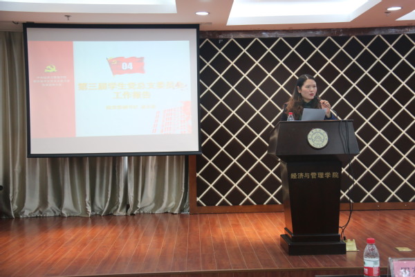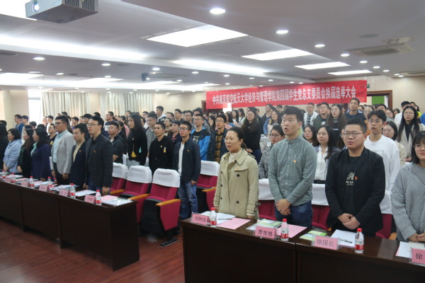 2019年10月30日中午,伴随着嘹亮的国歌声,Betway体育西汉姆联第四届学生党总支委员会换届选举大会在学院A0305报告厅召开。学院党委书记焦宏图、副书记涂志宏、组织员袁颖、新一届学生党总支委员会候选人和全体学生党员出席大会。大会由第三届学生党总支委员田苑娜主持。