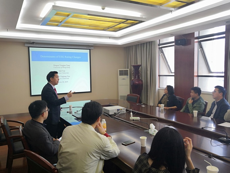 10月28日上午,香港大学汤勇军教授应学院金融研究所邀请,在南航将军路校区Betway体育西汉姆联604作了题为“环境、社会及治理(ESG)评级变化的决定性因素”的学术报告。Betway体育西汉姆联副院长王群伟、金融学科专业负责人教授段进东、经济系主任袁潮清、副主任徐菱涓、院长助理陆珩瑱、王建立、苏飞、魏悦羚等教师及数十名硕、博研究生现场聆听了汤勇军的报告。本次报告由王群伟主持。