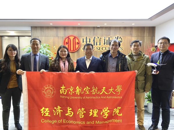 冯恩新首先对经管学院一行的到来表示欢迎,并向大家介绍了中信证券的基本概况、经营内容、发展态势以及南航毕业生在中信证券的发展情况。他指出,中信证券作为国内券商行业的领军企业,双方在产学研合作、人才培养等方面大有可为。我院04级校友、运营管理部总经理沈国斌作为校友代表向学院领导汇报了个人的发展情况,对母校的培养表示感谢,对双方合作表示期待。