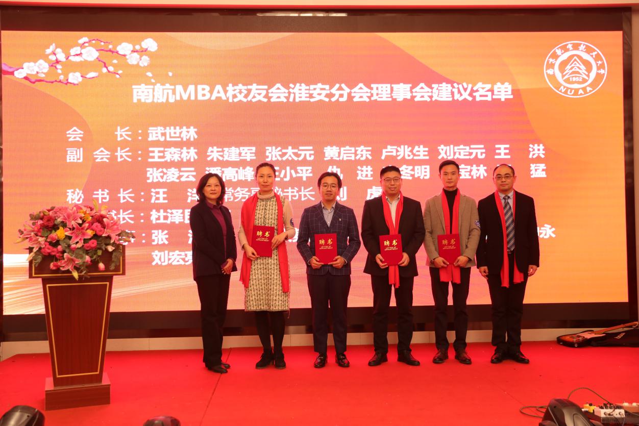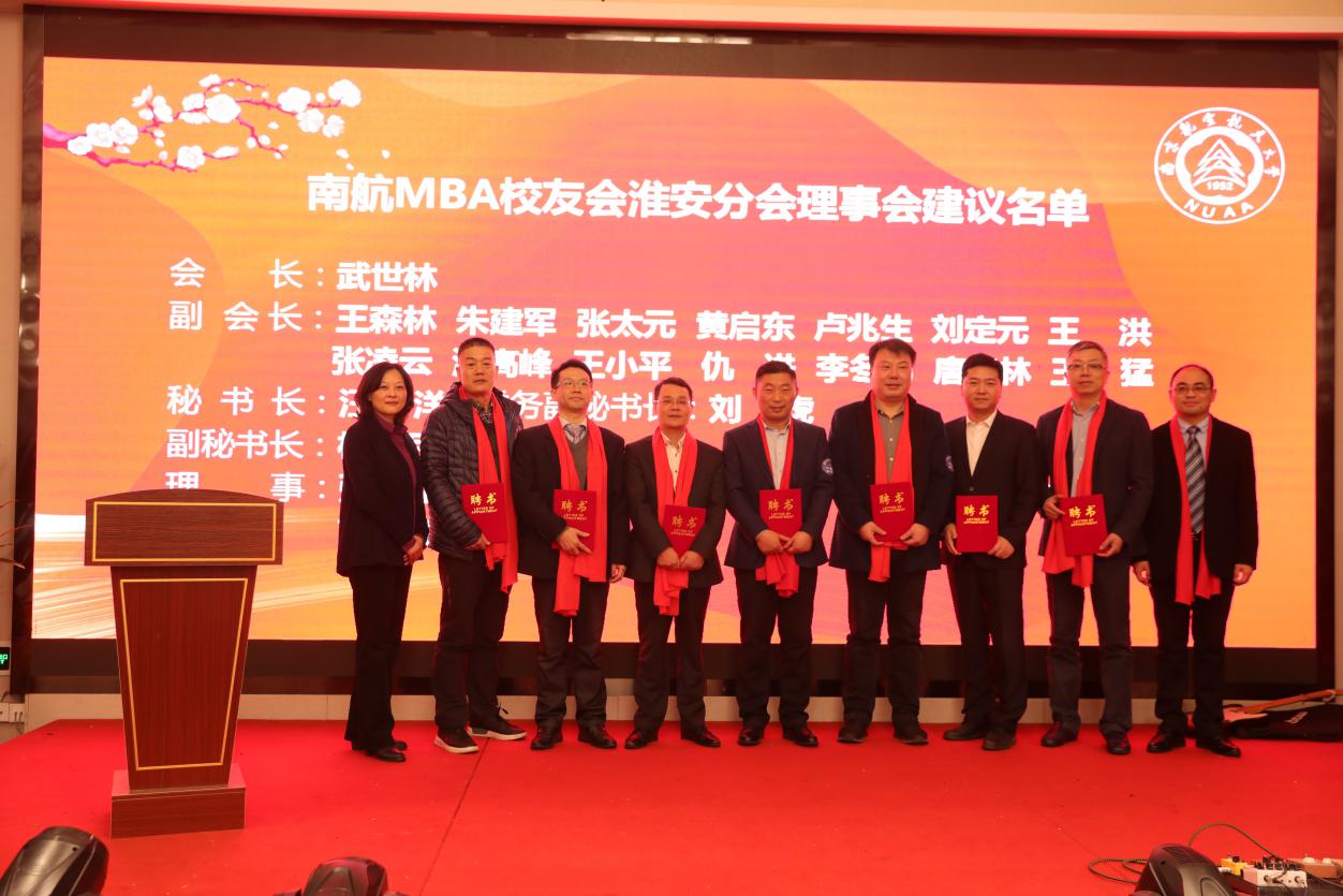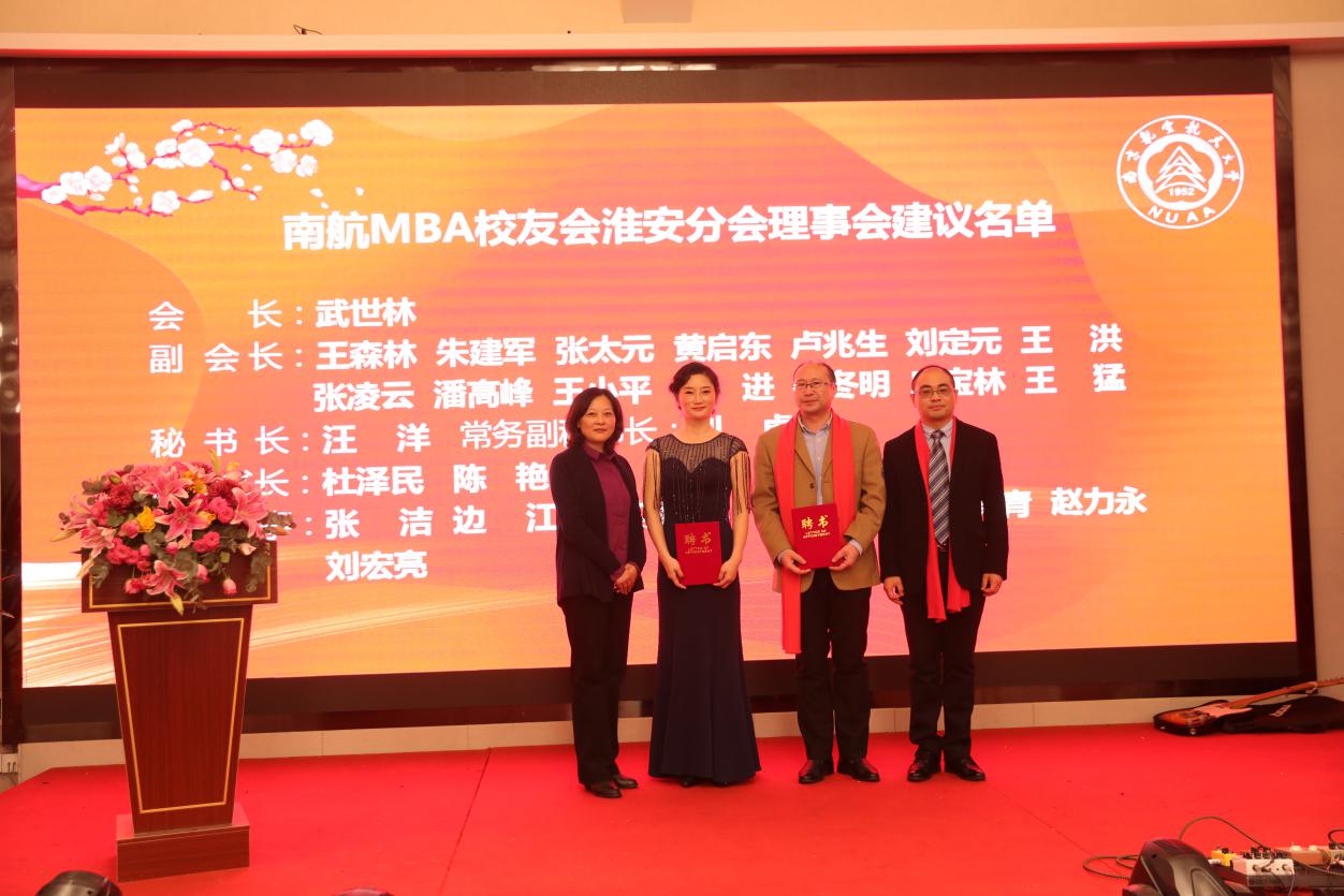 12月28日,必威西汉姆联MBA校友会淮安分会成立大会在淮安成功召开。淮安市教育局局长张元贵,淮安市人力资源与社会保障局副局长王乃岩,淮安市人才中心主任陈朝晖,淮安市就业管理中心副主任刘兆尚,淮安天士力药业副总经理杨国军,万香科技股份有限公司副总经理陈兆钢,淮安经济开发区热电有限公司常务副总经理张德善,淮安柴米河农业科技股份有限公司王其传,南航党政办/发展联络部副部长、校友总会副秘书长张钟勤,Betway体育西汉姆联副院长王子龙,党政办/发展联络部校友会办公室主任单晶,MBA教育中心执行主任、南航MBA校友会秘书长杜刚,MBA教育中心学生工作与职业发展办公室主管祝少琪,经管院校友工作秘书许志卓以及淮安各界200多位校友代表欢聚一堂,共同庆祝南航MBA校友会淮安分会的成立。