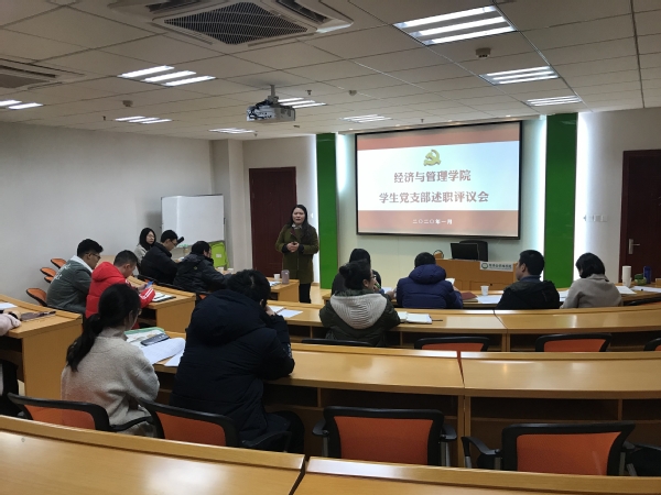 1月7日,Betway体育西汉姆联在学院党员活动室举行了2019年度学生党支部述职评议会,学院党委书记焦宏图、党委副书记涂志宏、党委委员邓晶、罗正军以及谢嗣胜、组织员袁颖、学生党总支成员以及学生党支部书记参加了活动。为深入学习贯彻落实习近平新时代中国特色社会主义思想和党的十九大精神,推动全面从严治党向基层延伸,学院结合各支部工作实际以及18年述职情况,组织了五位学生支部书记进行现场述职。
