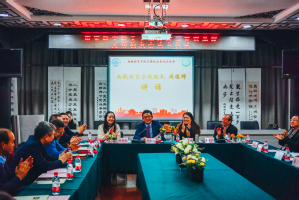 罗士礼向新当选的理事会成员表示祝贺,希望理事会能够肩负起这份荣誉和责任,为无锡地区的校友搭建有效的联络、交流平台,为学院发展建言献策。