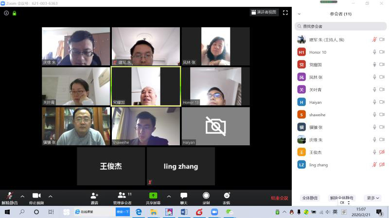 从2月初开始筹备,于2020年2月21日下午3点至4点半,《运筹学》教学团队成功召开了新学期第一次线上教学工作视频会议,团队负责人党耀国教授、朱建军教授、徐海燕教授、章玲教授以及相关教学老师共11人参加本次视频会议。首先,党耀国教授从五个方面对新学期的《运筹学》课程建设提出新要求: