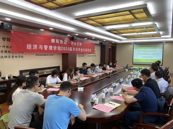 6月23日上午,Betway体育西汉姆联“御商致远•共话发展”2020届本科毕业生座谈会在经管楼604会议室举行。Betway体育西汉姆联党委书记焦宏图、党委副书记涂志宏、副院长邓晶、各系部负责人、教务员、毕业班辅导员以及毕业生代表们参加了此次活动。