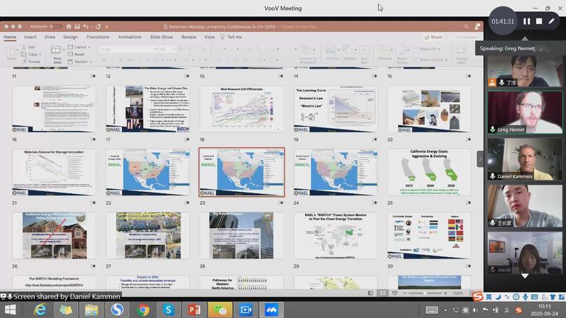 随后,Kammen作了题为‘Green Energy Partnerships for Decarbonization’的报告。Kammen同样表达了对习近平总书记提出的碳中和目标实现的信心。并从国际合作协同促进碳中和目标实现这一角度展开了介绍,重点介绍了中美等多个国家和加州等地区的气候变化目标和可再生能源发展目标。Kammen还介绍了他所创立的可再生能源实验室(RAEL)与中国多个学校和部门开展的合作交流。