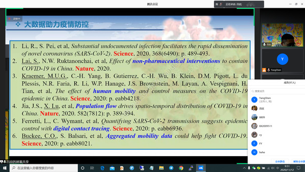 11月12日上午,国防科技大学系统工程学院教授吕欣受我院信息管理与电子商务研究所邀请,在腾讯会议作了题为“大数据技术在应急管理中的前沿应用”的讲座,我院部分教师及研究生共约100人线上参加了吕欣的报告分享,本次学术报告由副教授沈洋主持。