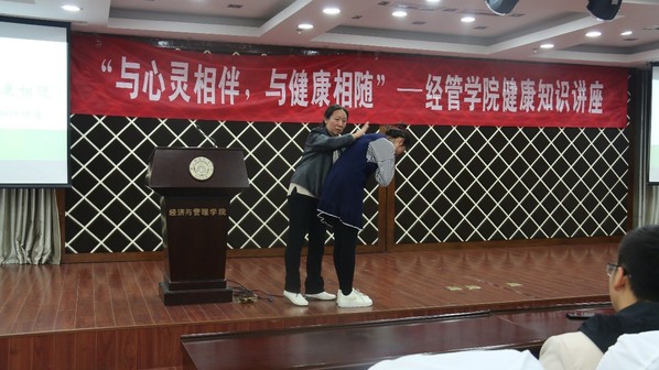 首先,武楠指出饮食习惯和生活状态对疾病有着不可忽视的影响,良好的饮食习惯和积极的生活状态是远离疾病的两大法宝。接着,她针对海姆利克急救法步骤进行了教学并现场示范,教育引导学生养成健康良好的生活方式,提高自我保健能力。
