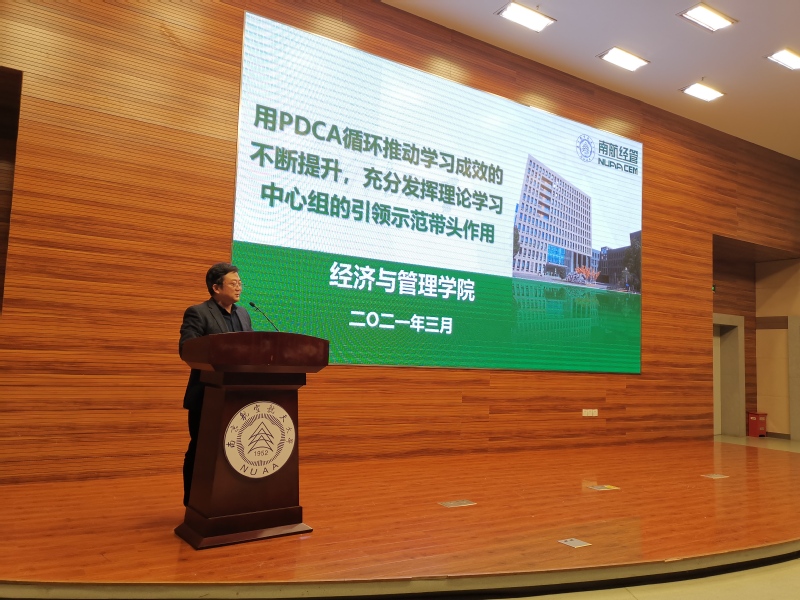 在颁奖环节我院3项获奖:学院网站获得2020年度优秀二级网站、党委书记苏州获得2020年度金评论奖,时云获得2020年度十佳宣传信息员。在交流发言环节,院长周德群代表理论学习中心组示范点做了题为《用PDCA循环推动学习成效的不断提升,充分发挥理论学习中心组的引领示范带头作用》的交流报告。