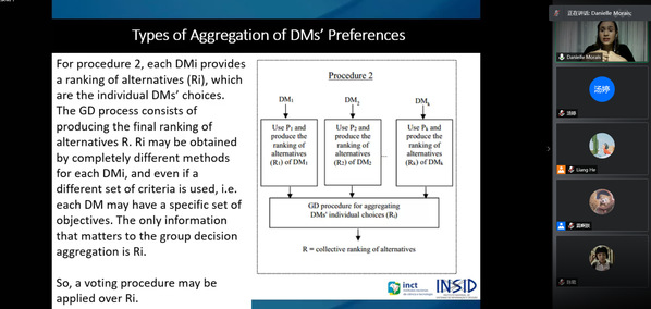 在本次学术报告中,Danielle Costa Morais首先介绍了投票程序(VP),可用于处理几个群决策问题;然后讨论了这些VP在商业组织中的应用,并介绍了一个框架,用于选择要在组织环境中使用的特定VP。最后根据VP的缺点和与业务战略保持一致的期望,探索了与VP选择有关的部分决策过程。
